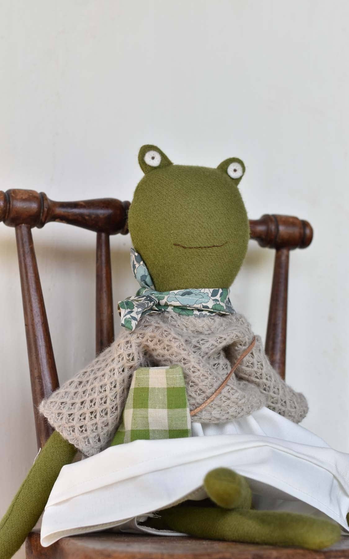 Details * Size: 16" tall * Material: 100% wool body, organic wool stuffing * Outfit includes: layered skirt, shawl, Liberty scarf, gingham satchel * Spot clean only * Recommended for ages 3+