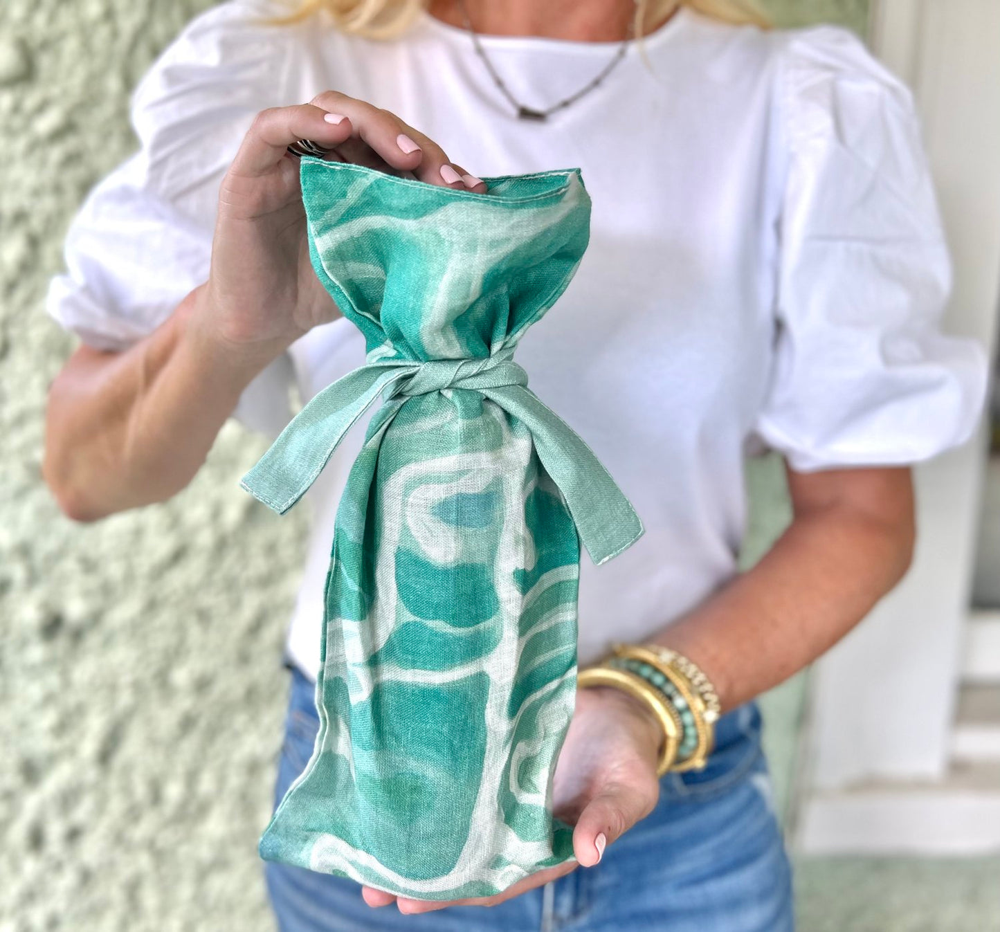 Cheers! Dress up your favorite bottle with these colorful 100% cotton, coastal wine bags.