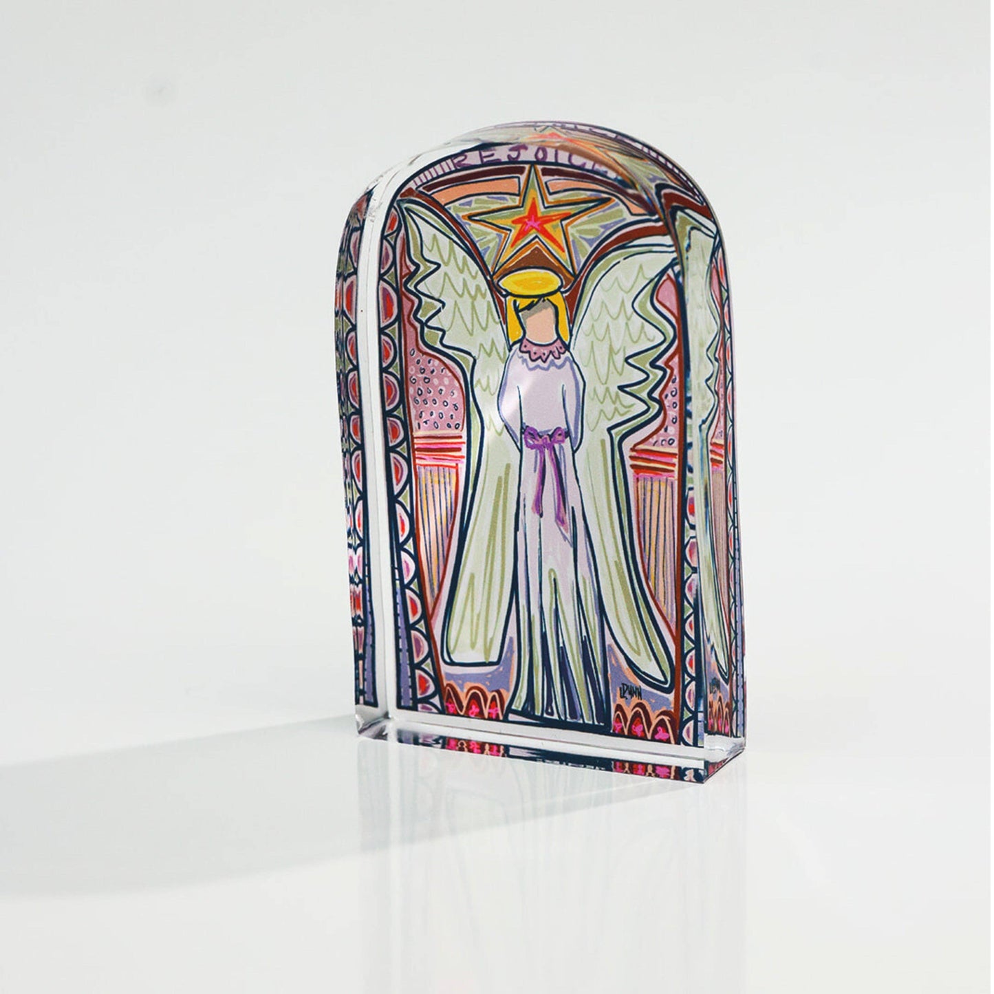 Lauren's stylized pink stained-glass angel is inspired by the ornate stained glass windows found throughout Europe.