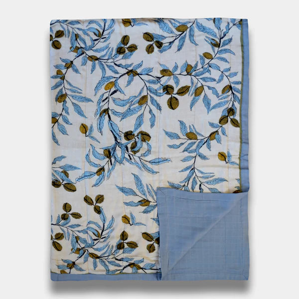 Lightweight and breathable, these muslin quilts feature hand-painted florals and botanicals beautifully printed on soft cotton muslin. Each one is finished with a contrasting border and backing, adding a touch of color and artful charm to any room.