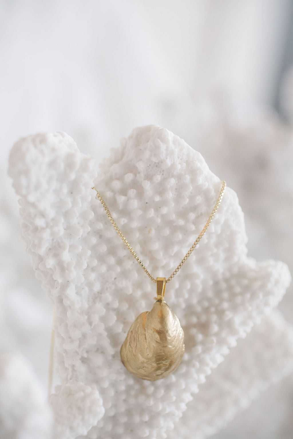 Materials: Genuine shell hand-painted with metallic gilding material, cured UV resin, 14k gold-filled chain