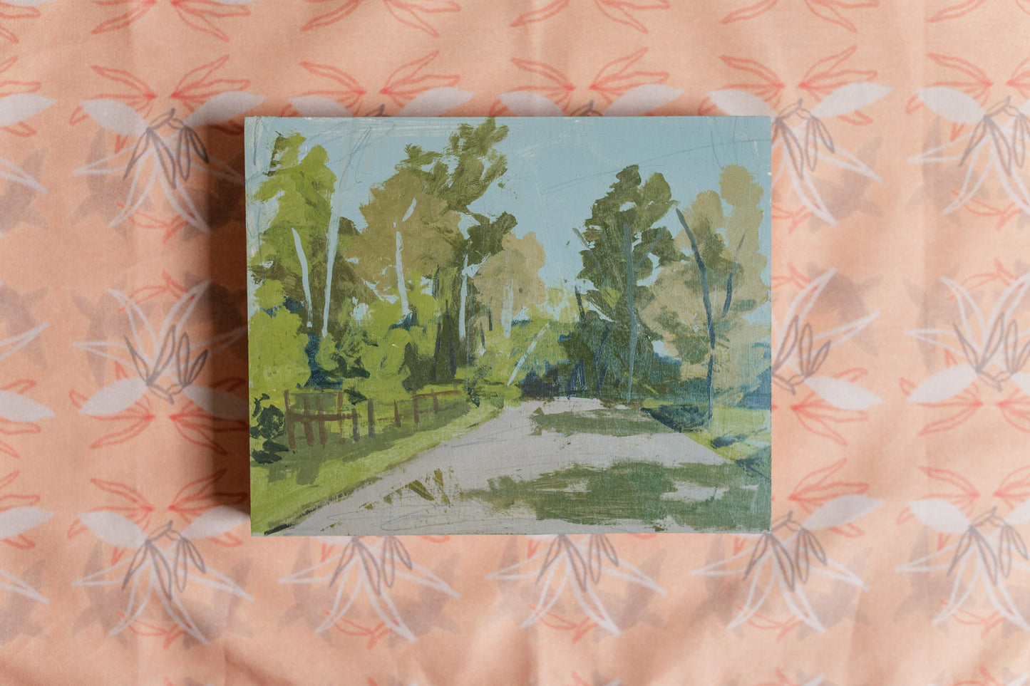 Morgan is a wife, mama, and artist based in Auburn, Alabama. She works primarily with heavy acrylics on wood, creating loose, transportive landscapes that invite reflection and curiosity. Grateful for the balance of art and motherhood, she continues to explore new subjects released in small, heartfelt collections throughout the year.
