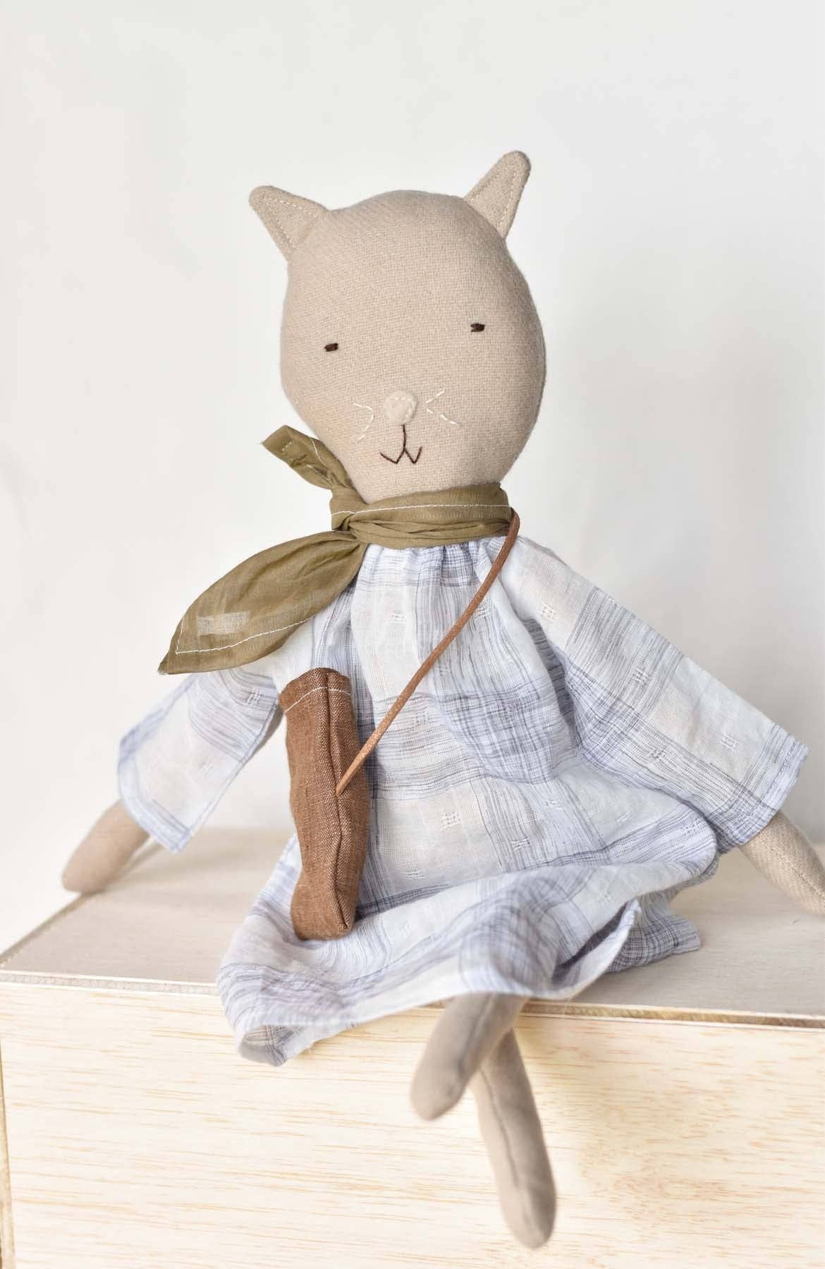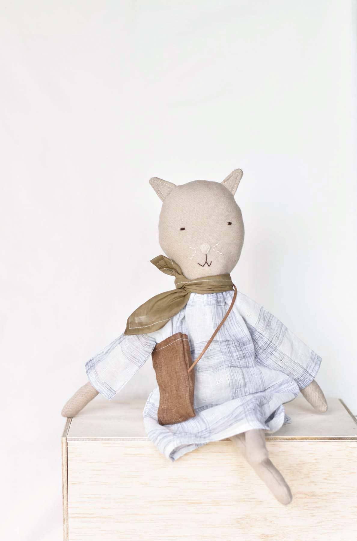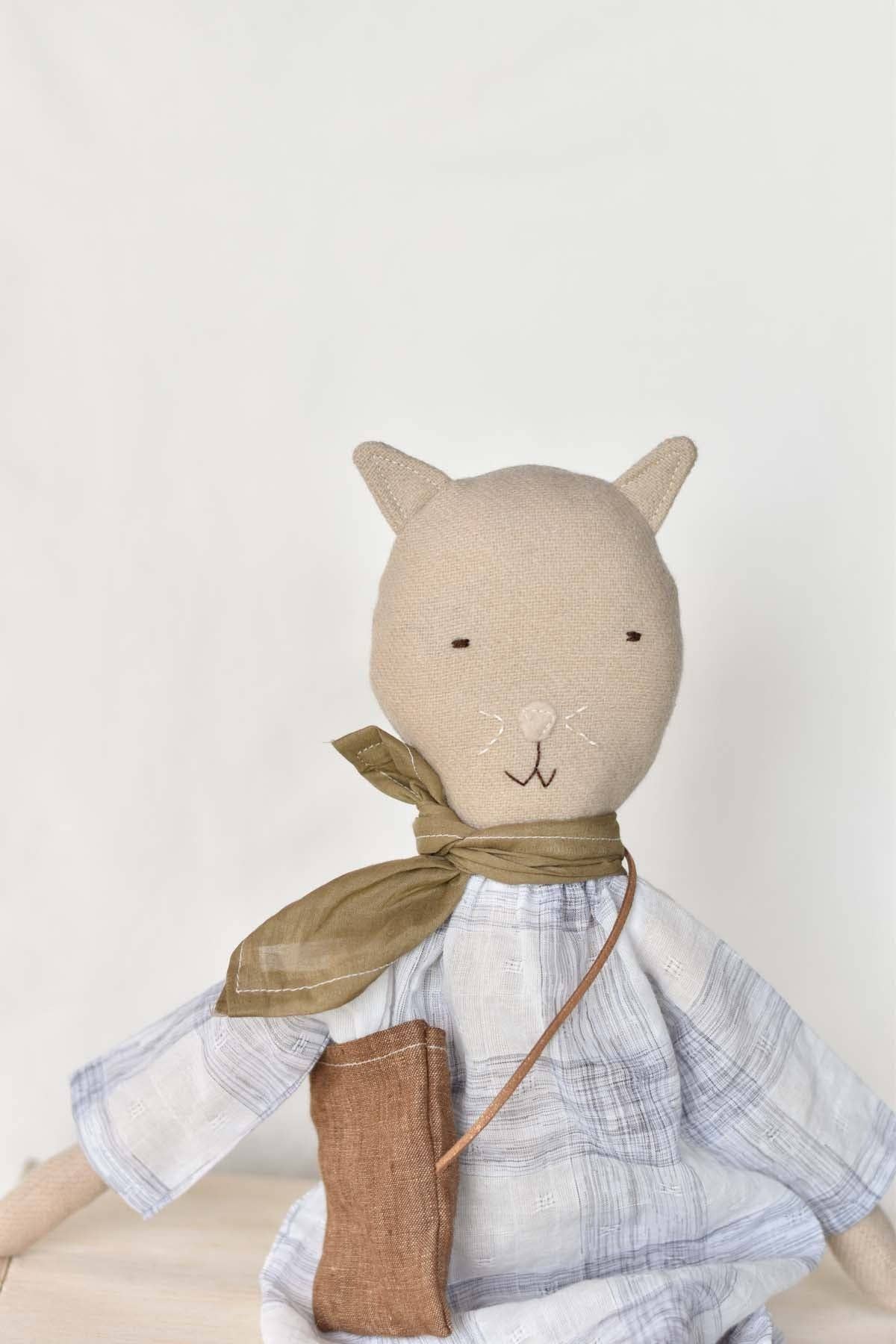 Introducing Mae the Barn Cat, an heirloom doll designed to inspire imagination. Mae is handmade and dressed in a grid plaid Day Dress. She also coordinates with a linen crossbody satchel. Mae is ready for her next adventure. Soft, timeless, and handcrafted, she’s made to be treasured.