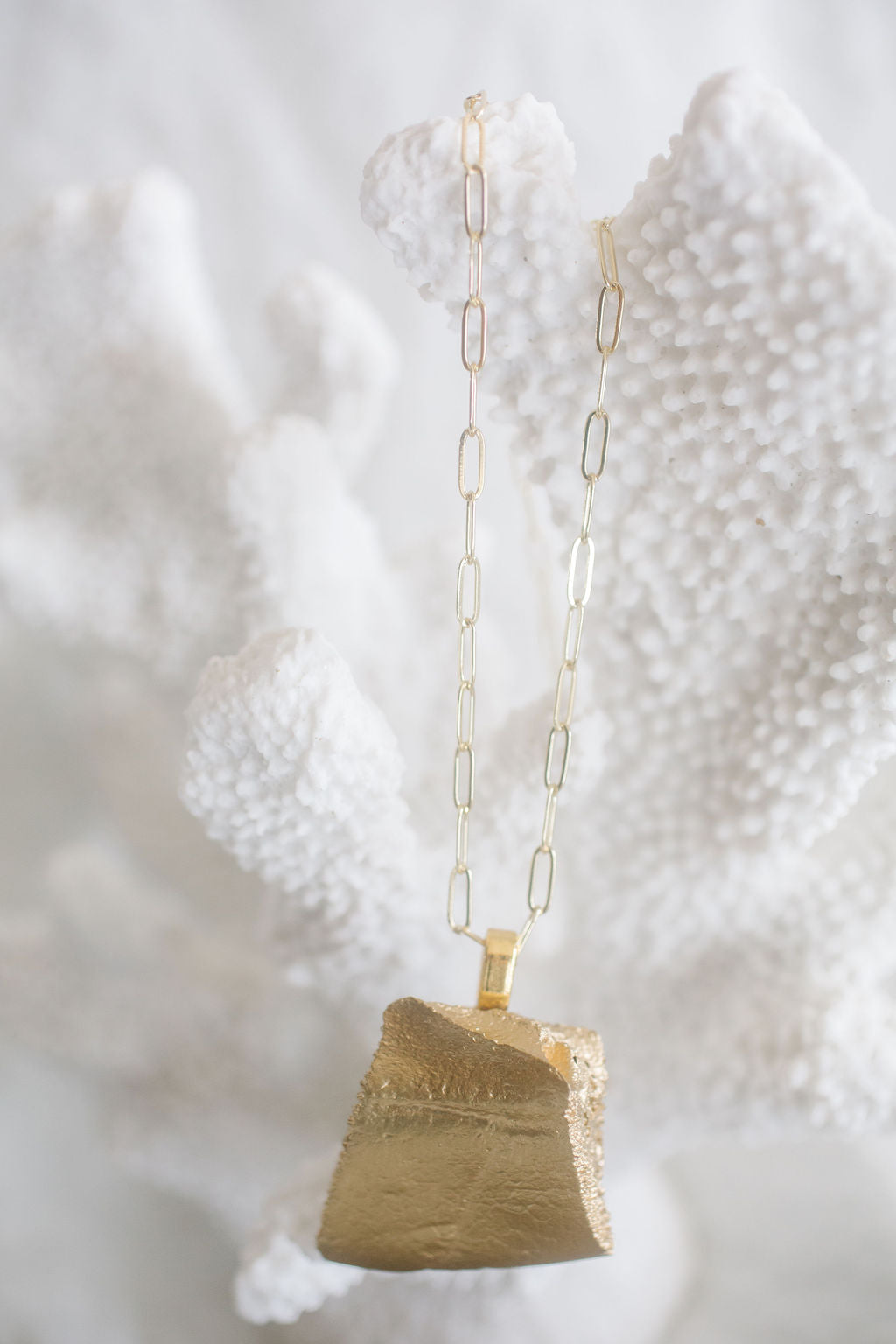 Materials: Genuine shell hand-painted with metallic gilding material, cured UV resin, 14k gold-filled chain