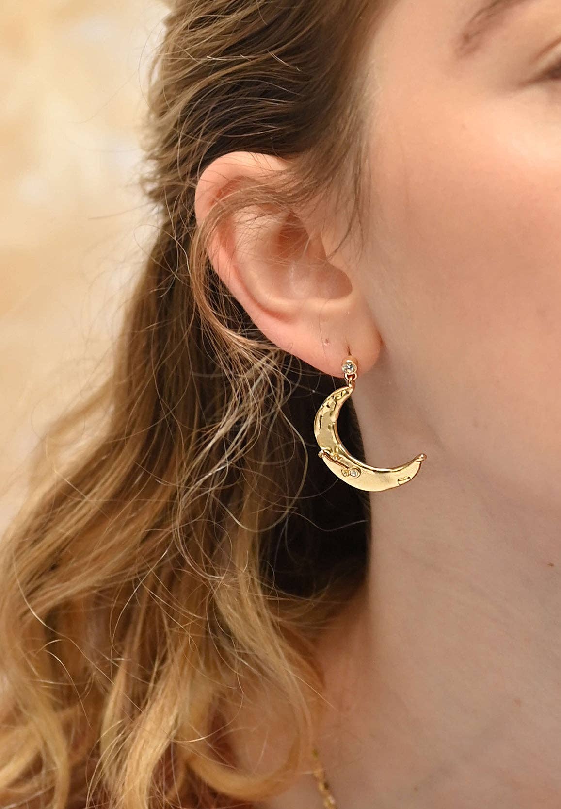 Drawn from the beauty of cherishing time's imperfections, these asymmetrical sun and moon earrings feature an organic design accented with a subtle shimmer. They exude timeless elegance. Materials Brass Size 1.25" x 1.25"