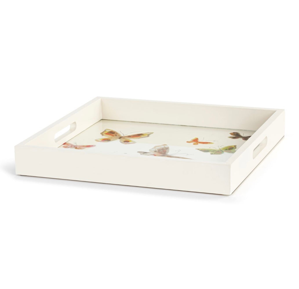 This beautifully imaginative collection of artisan butterfly reproductions, including the Scattered Butterfly Wood Square Tray - 14in, infuses Elisabeth Hays' love of natural elements, mixed media, translucent materials and abstract art.